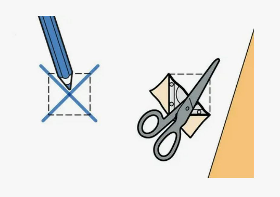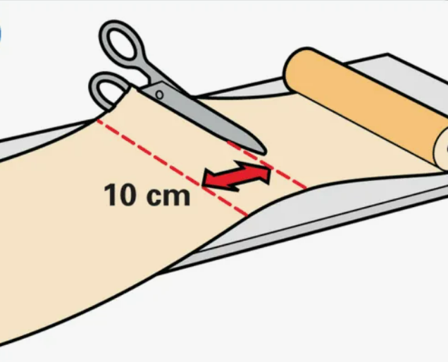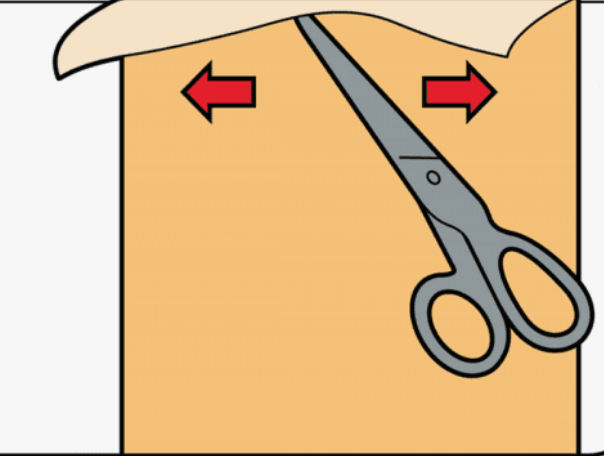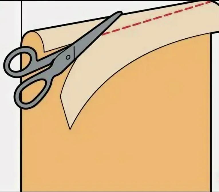 По образовавшейся линии сгиба лишнюю часть полотна обрезают.