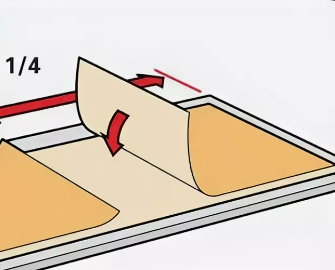 Затем, полотно сложить, как показано на рисунке и оставить на некоторое время для пропитки.